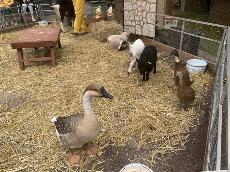 Les lapins, les canards, le porcelet, le coq, la biquette et les autres animaux de la basse-cour ont été les stars de l'après-midi, apportant aux résidents et aux enfants un moment complice, de douceur et d'évasion.