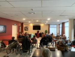 Puis un gâteau aux fruits de saison, composée par notre chef cuisinière Éliane, est venu ravir les papilles des résidents, toujours touchés de souffler leur bougie et de recevoir une belle composition fleurie.