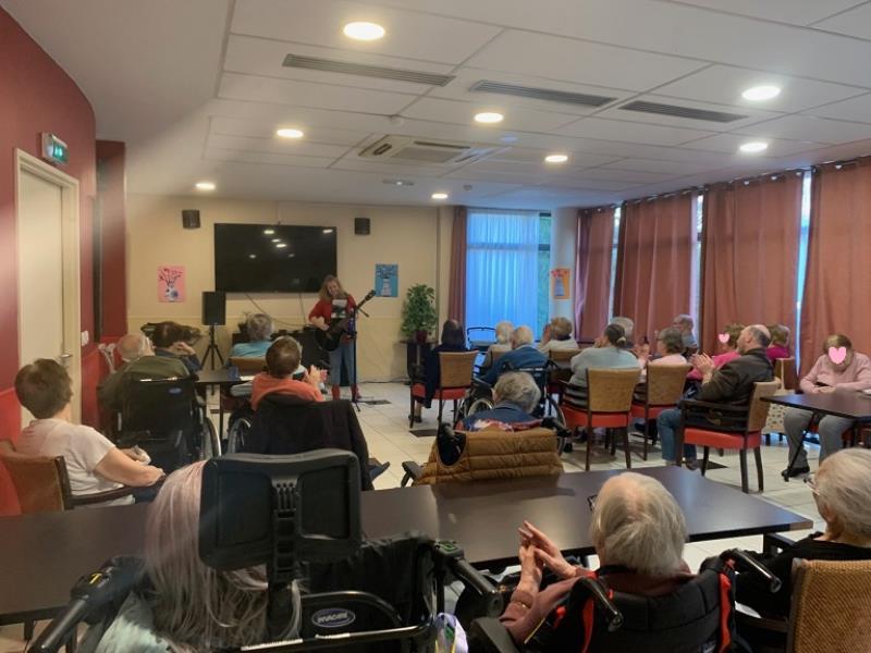 À l’Ehpad Résidences Médicis, la célébration des anniversaires du mois de février a été un véritable moment de fête grâce à la chanteuse Hélène Lafleur, dont la superbe voix et l’enthousiasme communicatif ont entraîné résidents, familles et personnel sur la piste, au rythme des célèbres Claudettes de Claude François.