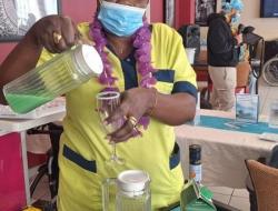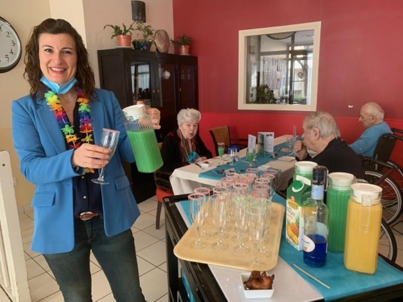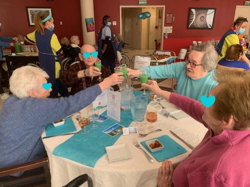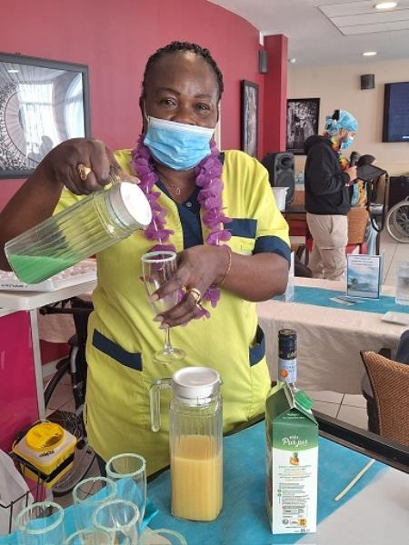 Un cocktail spécial "Blue Hawaï" réalisé par notre responsable hôtelière Marie-Aude a accueilli les résidents, accompagnés d’acras de morue, préparés "maison" par notre chef Eliane.