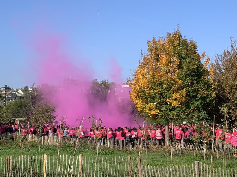Après avoir revêtu notre tenue rose, nous être échauffés en musique, nous avons parcouru dans la bonne humeur les 3,8 km sous un soleil radieux !