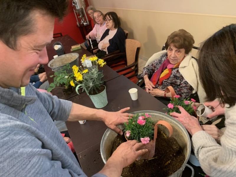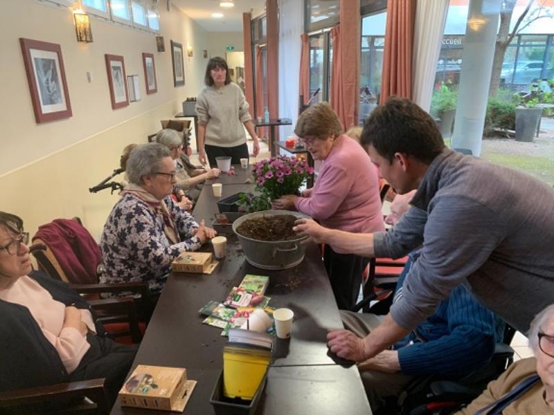 Un atelier de jardin thérapeutique a été proposé aux résidents, autour de la plantation de fleurs et de graines de légumes variés. Cette activité conviviale, animée avec soin par Vincent de Naturapie, a permis d’embellir l’entrée de la résidence grâce à une jolie mise en scène végétale.
