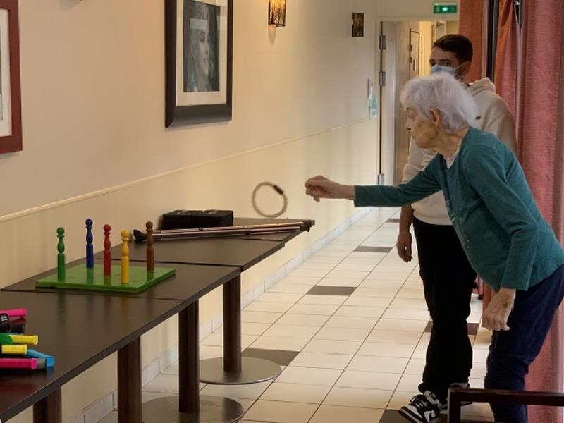 Ce matin, les résidents ont participé à une joyeuse matinée de jeux de motricité, encadrée par plusieurs animateurs. La séance a commencé par un échauffement en douceur afin de préparer le corps et de mettre tout le monde à l’aise.