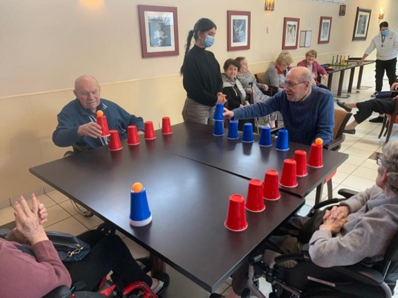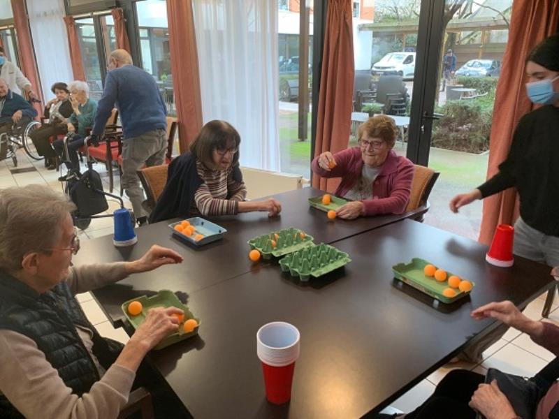 Les jeux d’adresse et d’agilité ont ensuite pris le relais : empiler des gobelets sans faire tomber la balle, se passer une balle de raquette en raquette ou encore lancer des balles de ping-pong dans une boîte à œufs. Autant d’activités ludiques permettant de se mobiliser physiquement sans s’en rendre compte.