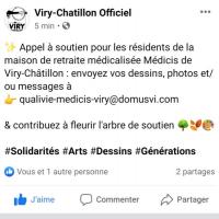 Publiée le 25/03/2020La maison de retraite médicalisée Médicis à Viry-Chatillon est heureuse de voir son arbre de soutien fleurir pour ce printemps. Il se propage sur les murs. Merci à l'ensemble des familles et habitants de la ville, de France et du monde. Merci pour vos mesages de soutien. #domusvi #ehpad #residencemedicis #virychatillon #co [...] Lire la suite