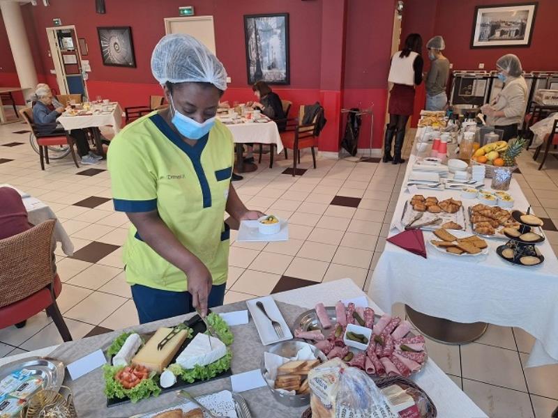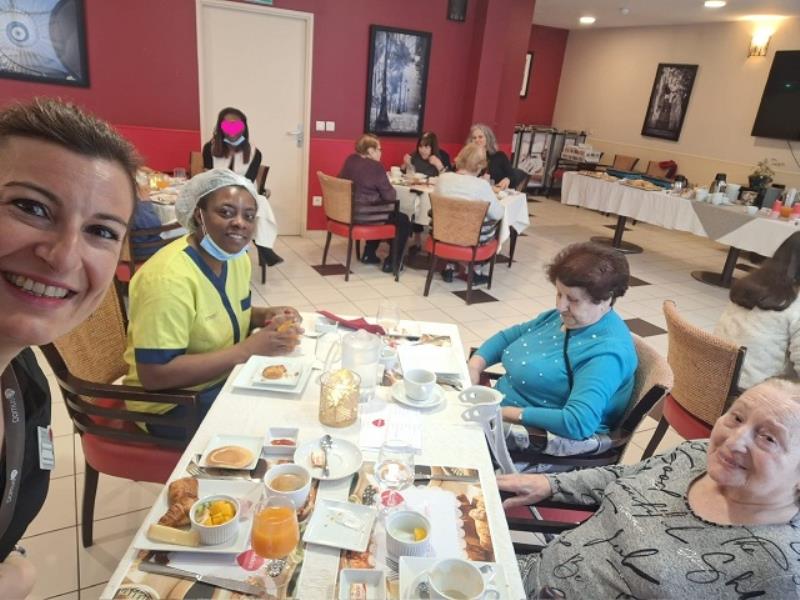 Un petit-déjeuner "gourmand" et convivial a été organisé pour certains résidents, avec un buffet généreux favorisant l’appétit grâce aux couleurs, aux odeurs et au plaisir du choix, afin de lutter contre la dénutrition et stimuler l’autonomie.