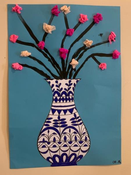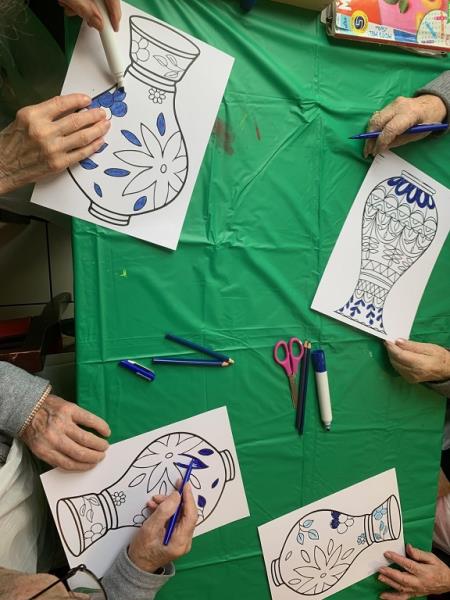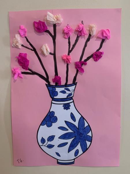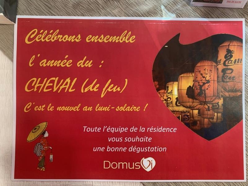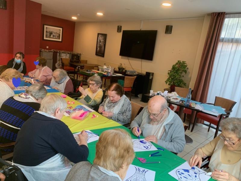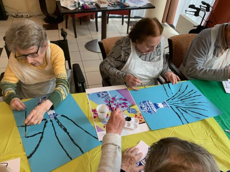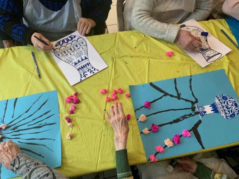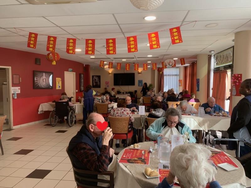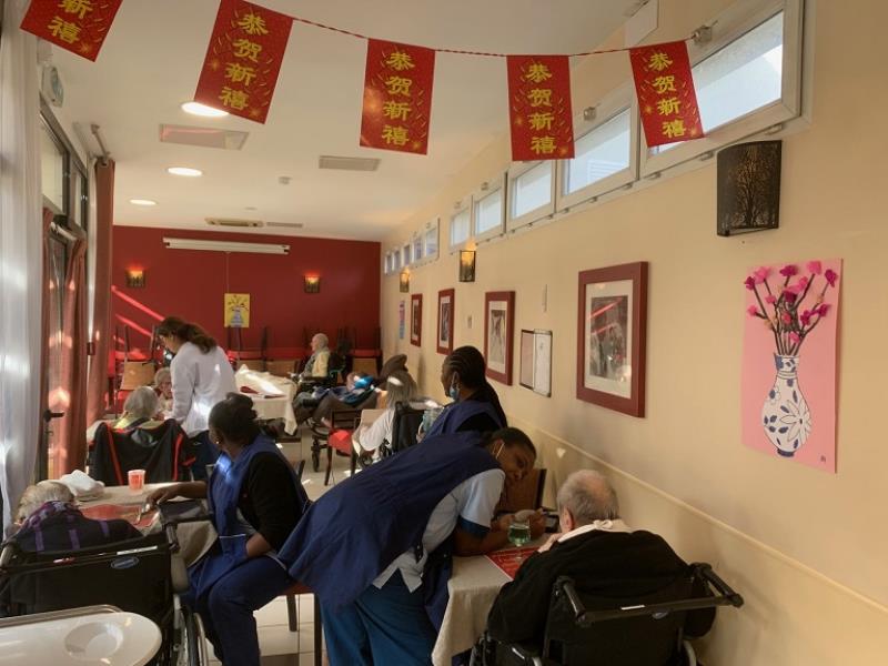 À l’occasion du Nouvel An chinois, célébré cette année sous le signe du "Cheval de feu", les résidents de l’EHPAD Médicis de Viry-Châtillon ont participé avec enthousiasme à un atelier créatif pour décorer les salles de restaurant aux couleurs de l’Asie : ils ont mis en couleur de magnifiques vases de style Ming, soigneusement détourés et collés sur une feuille, avant de peindre de délicates branches noires agrémentées de fleurs en papier aux nuances de rose.