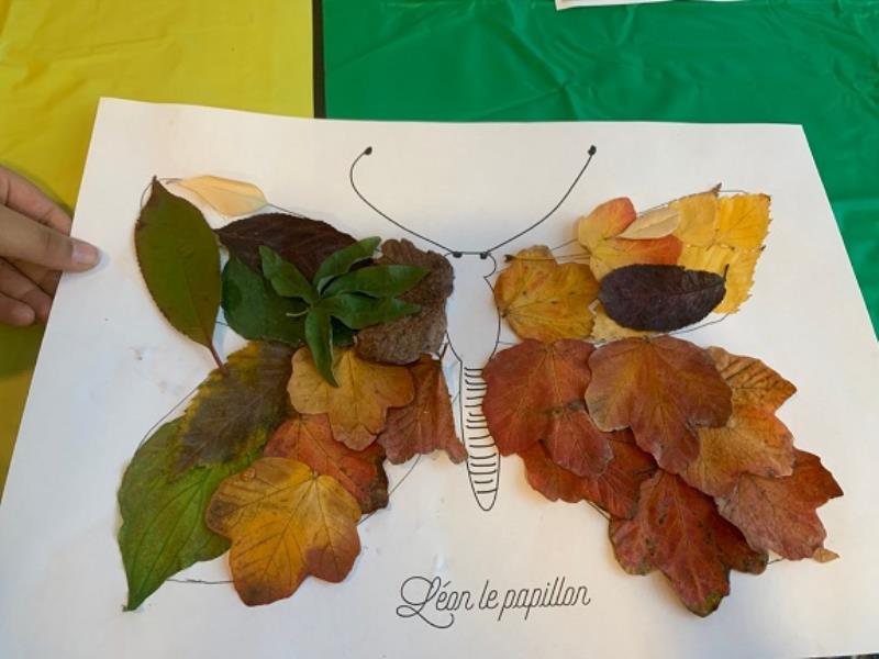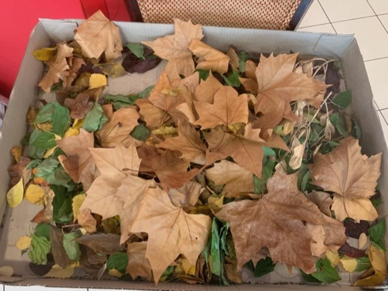 Les enfants avaient pris soin de ramasser avant de venir toutes sortes de feuilles d'arbres qu'ils nous ont ramenées.